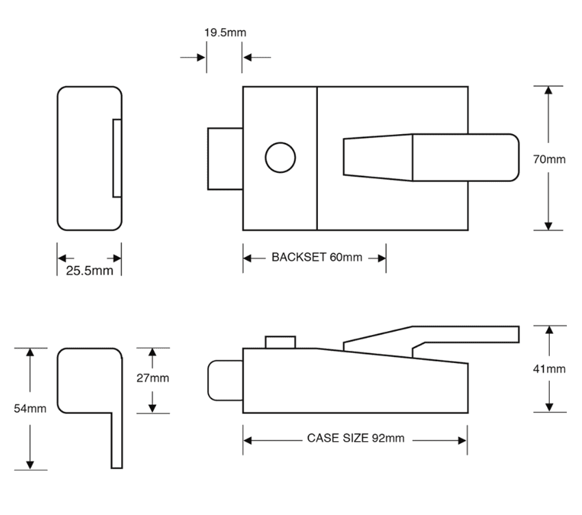 Includes lock case, striker plate and fixing screws