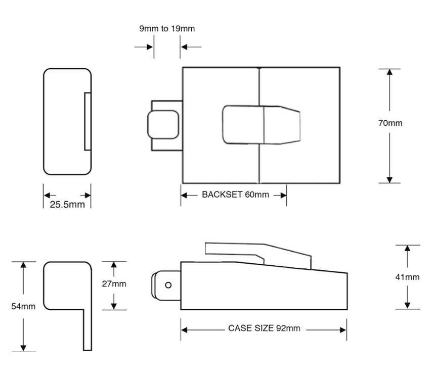 Designed to replace 60mm backset rim night latches without little adaptation to door and frame.